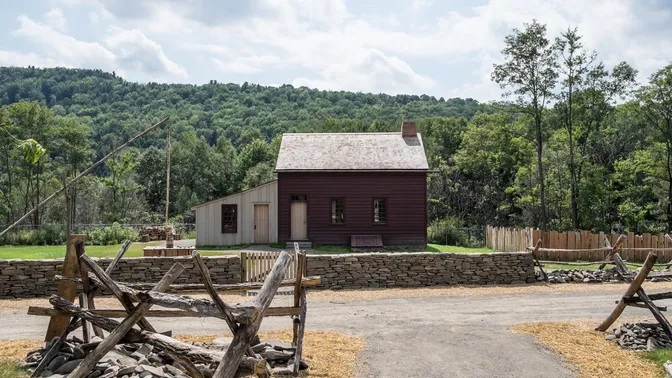 Joseph and Emma lived with Joseph’s parents near Palmyra, New York, for much of the first year of their marriage. They then moved to Emma’s hometown of Harmony, Pennsylvania, at the beginning of December 1827.3 The young couple first stayed in the home of Emma’s parents, Isaac and Elizabeth Hale. After a brief period, Joseph and Emma moved into a house on a narrow strip of land next to the Hale farm. The 13½ acres had once belonged to Isaac Hale, who sold it to his son Jesse in 1815. The northern half of the land included steep, rocky hills covered in trees. On the other half, nearer the river, Jesse Hale had built a home, plowed fields, planted an orchard, and cleared the land of timber. One year, he made about 360 pounds of maple sugar from the mature sugar maple trees growing on the north end of the property.4