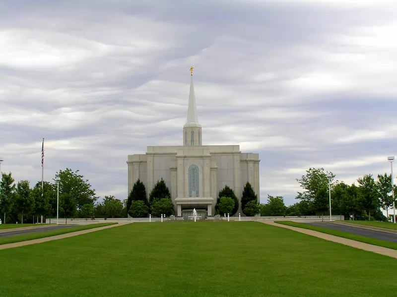 The Birmingham Alabama Temple and surrounding landscape.