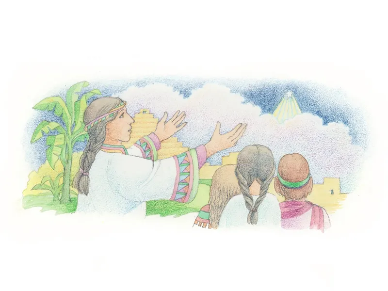 A binder of family history documents along with a handful of family history images. From the Children’s Songbook, page 199, “I Have a Family Tree”; watercolor illustration by Richard Hull.