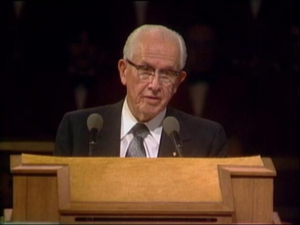 President Ezra Taft Benson delivers a message titled "Prepare for the Days of Tribulation."