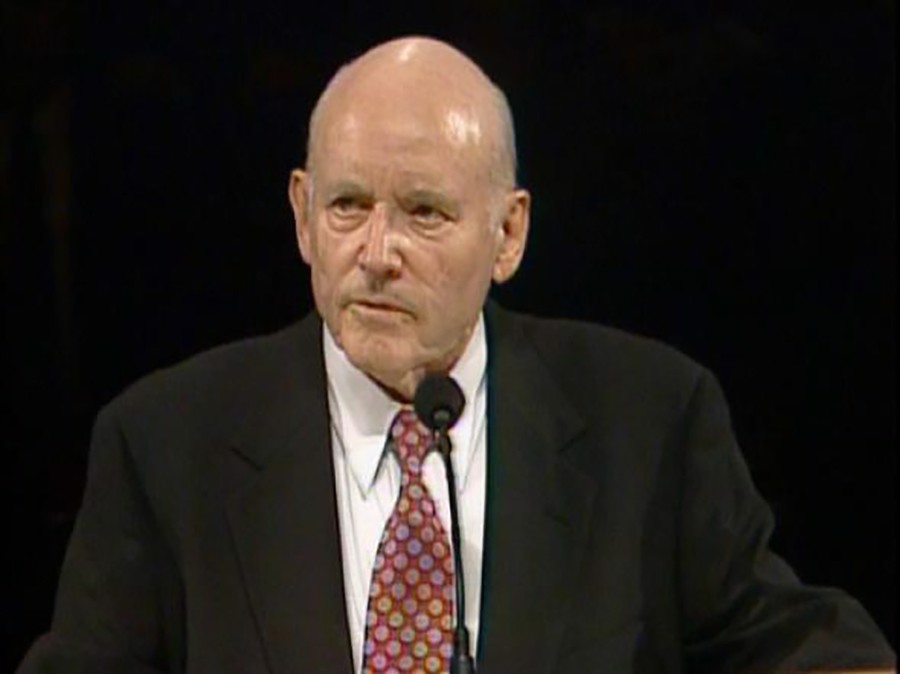 President Howard W. Hunter delivers a message titled "The Beacon in the Harbor of Peace."