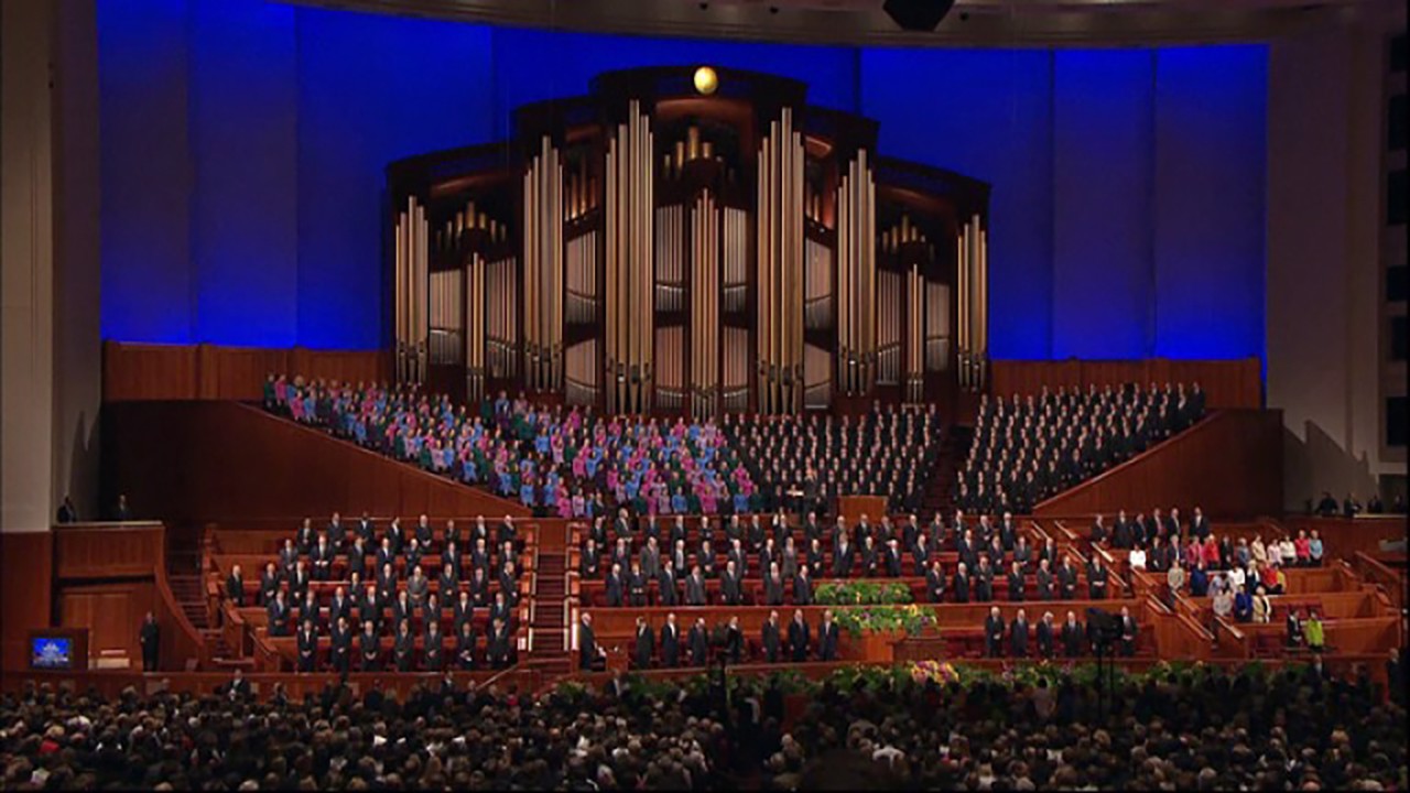 The choir and congregation sing “We Thank Thee, O God, for a Prophet.”