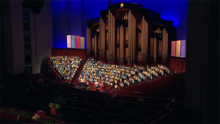 A Young Women choir from stakes in Salt Lake City sings “I Know That My Redeemer Lives.”