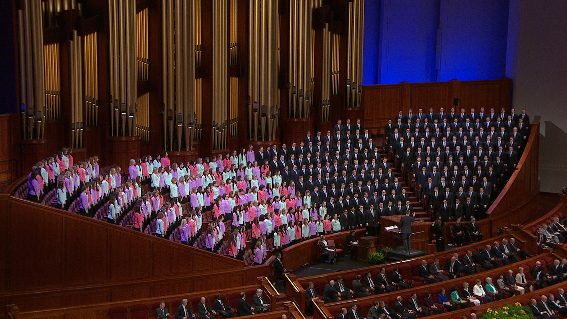 A combined choir from the Orem Institute of Religion sings “Glory to God on High.”