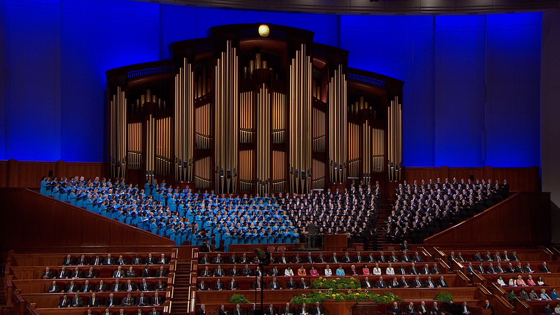 The Mormon Tabernacle Choir sings “Let Us All Press On.”