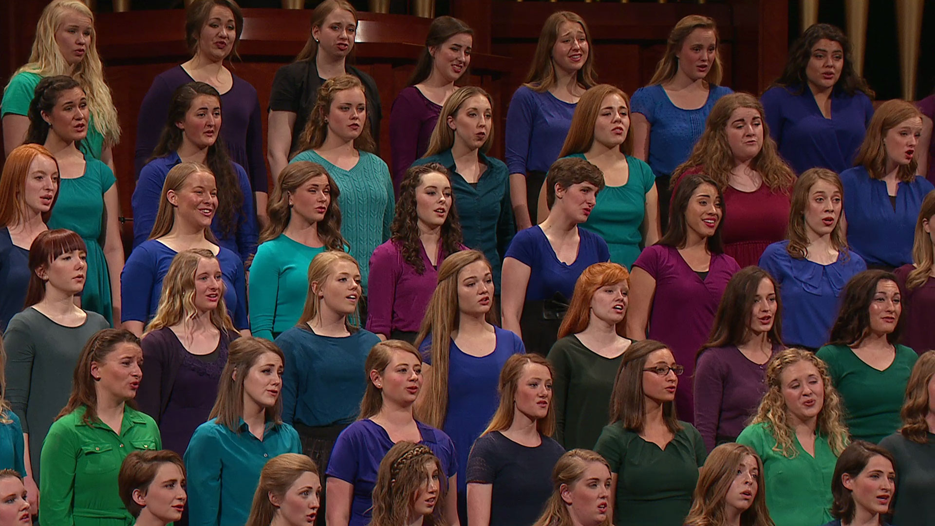 A Combined Relief Society Choir from Brigham Young University sing, "My Heavenly Father Loves Me."