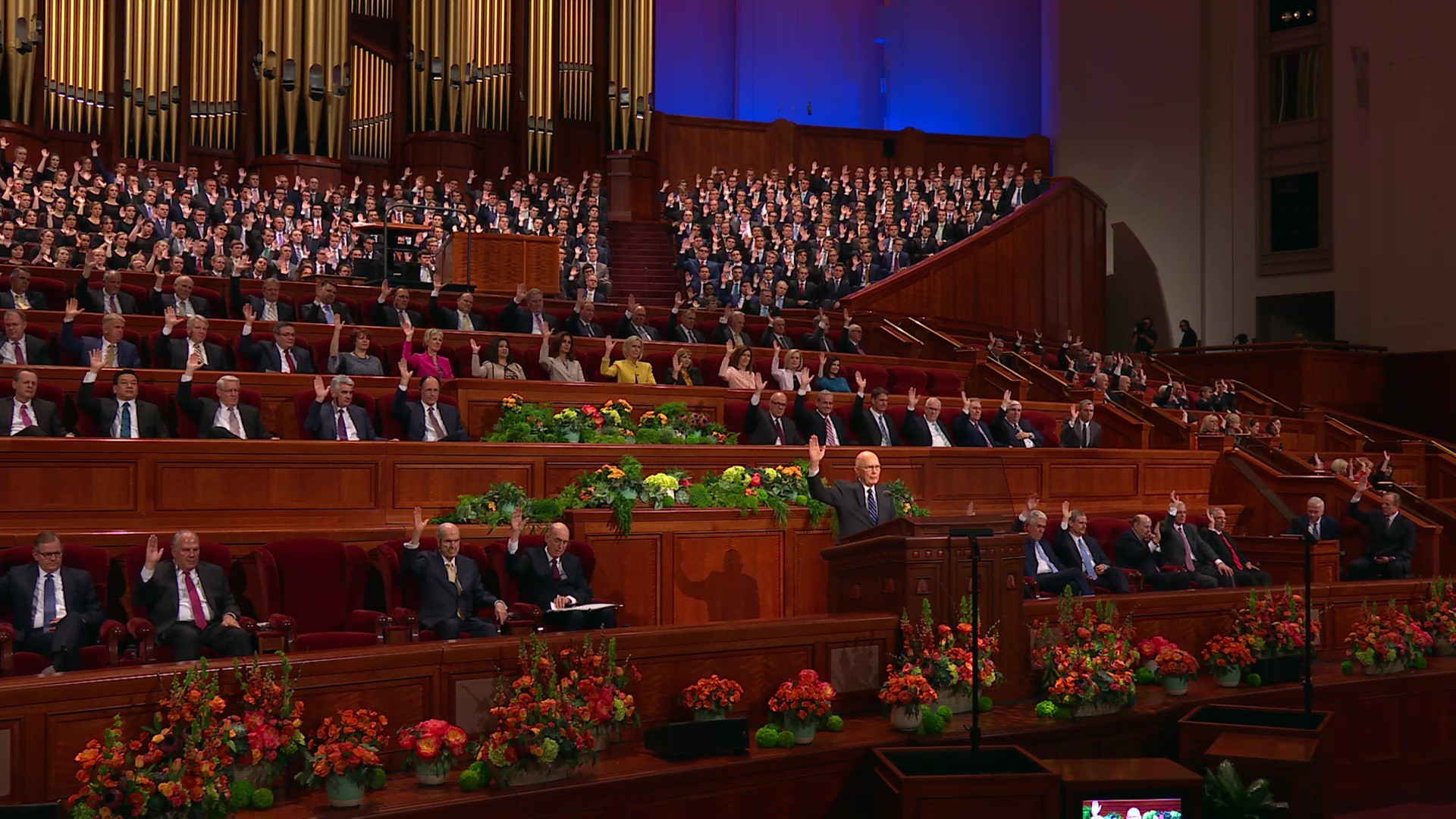 Presidente Oaks presenta a las Autoridades Generales, los Setenta de Área y las Presidencias Generales de las organizaciones auxiliares de la Iglesia para su voto de sostenimiento.