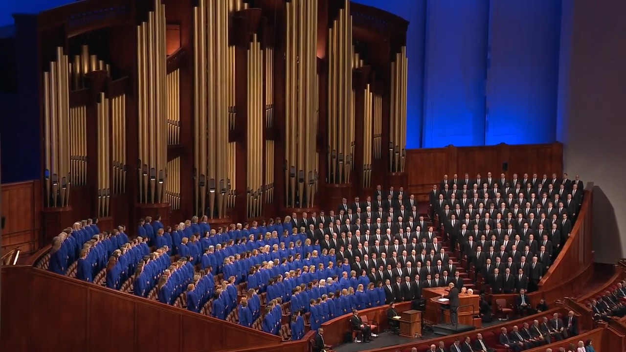 The Tabernacle Choir at Temple Square sings "Press Forward, Saints".