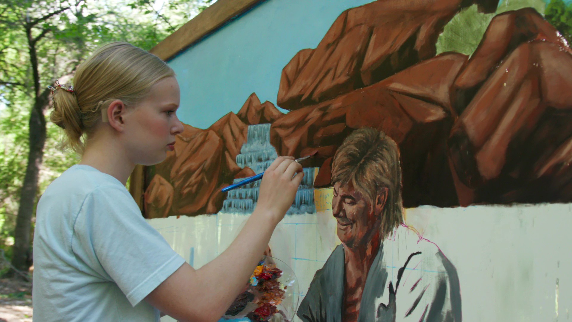 Sarah es una artista que pinta la historia de Alma bautizando en las aguas de Mormón y la comparte con su amiga Addie. Aprende más sobre cómo las personas deseaban ser bautizadas y seguir a Jesucristo en Mosíah 18–24 en el Libro de Mormón.