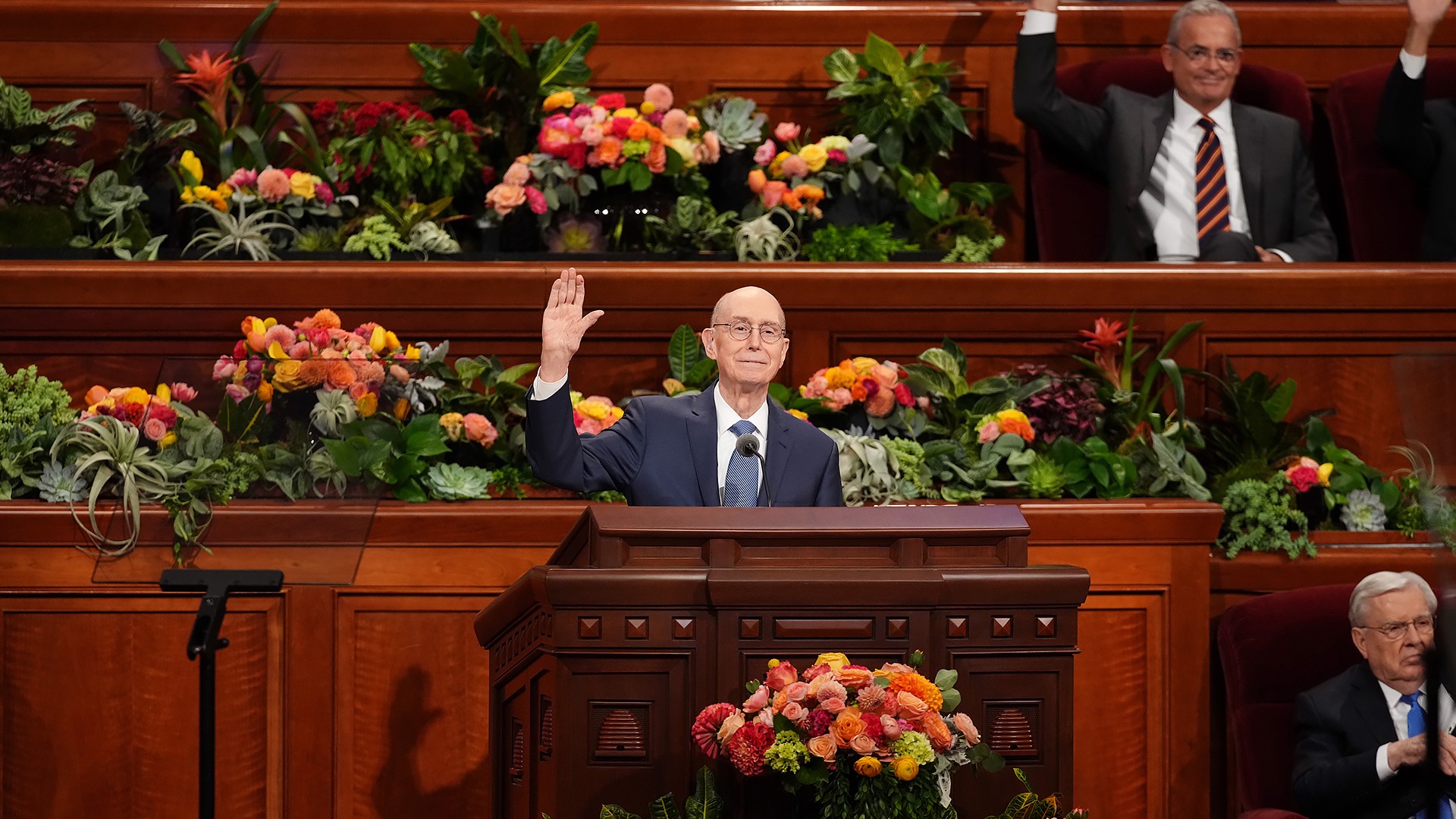 Præsident Henry B. Eyring præsenterer Kirkens generalautoriteter, områdehalvfjerdsere og øverste ledere til opretholdelse.