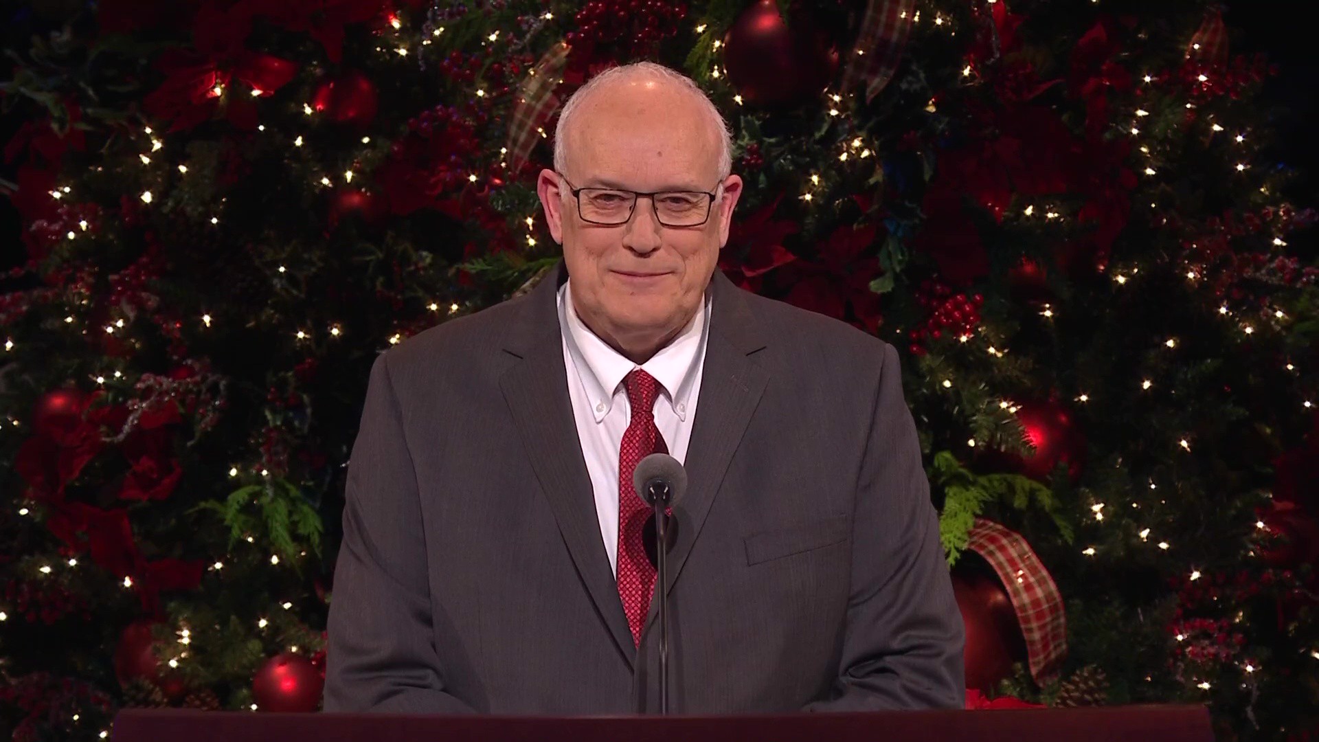 Elder Paul V. Johnson speaks at the First Presidency's Christmas devotional broadcast held on December 3, 2023.