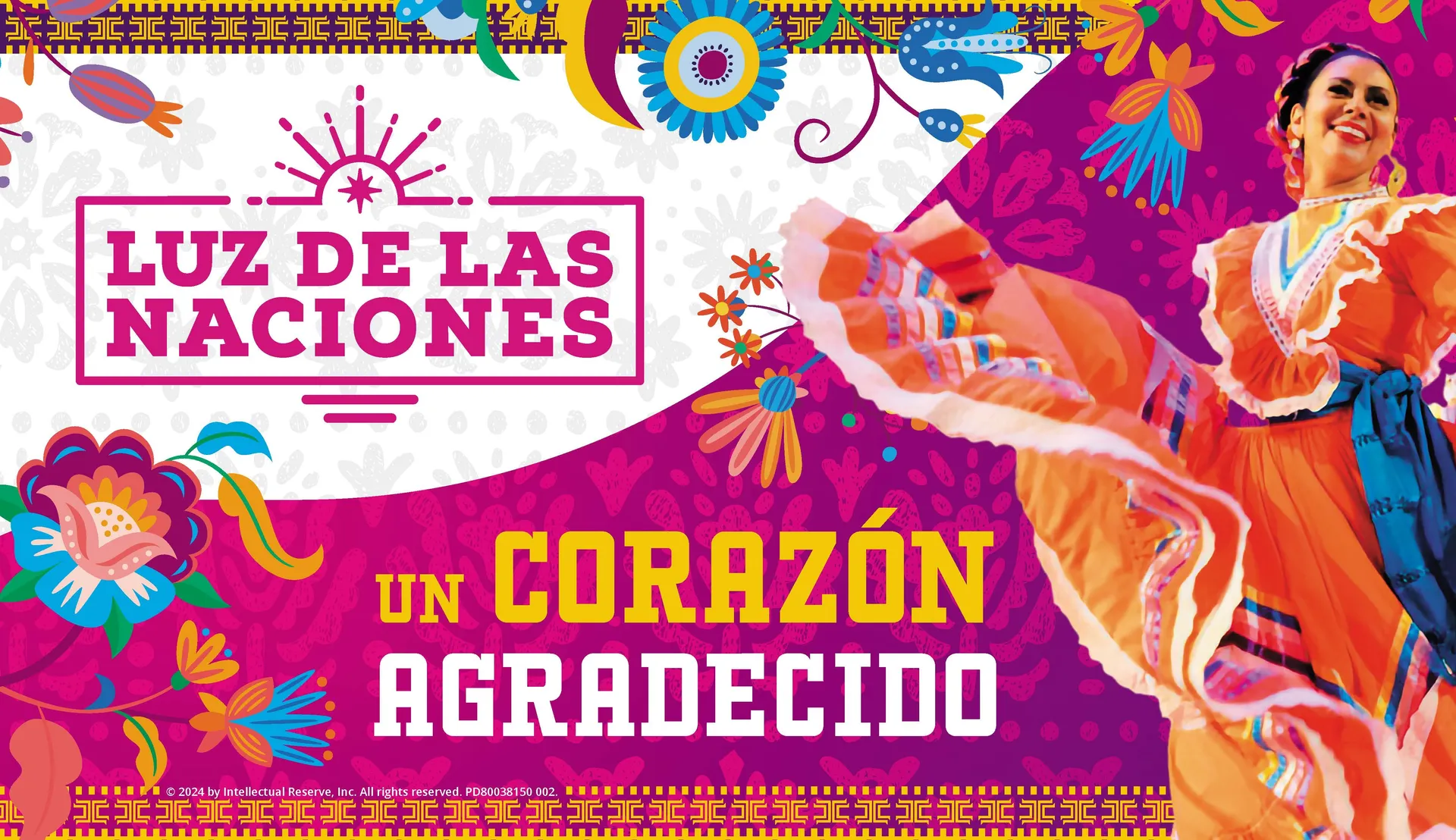 The Luz de las Naciones (Light of Nations) event celebrates Latino cultures and traditions from different parts of the world. This year's theme is "A Thankful Heart." Israel Gonzalez-Nieri, Director. Gioconda Vaca, Associate Director. Irene Caso, Host.