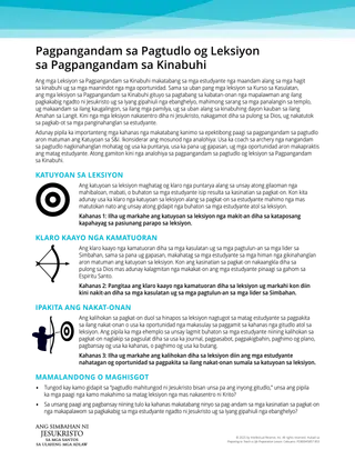 Kini nga mga leksiyon nakasentro ni Jesukristo, nakagamot sa pulong sa Dios, ug nakatutok sa pagtubag sa mga panginahanglan sa estudyante. Adunay pipila ka importante nga mga kahanas nga makatabang kaninyo sa epektibong pagpangandam sa pagtudlo aron matuman ang tumong sa S&I. Ikonsiderar ang mosunod nga analohiya: Ang usa ka coach sa pagpana nga nangandam sa pagtudlo kinahanglang mohatag og puntarya, usa ka gapasan ug pana, ug mga oportunidad alang sa matag estudyante sa pagpraktis.