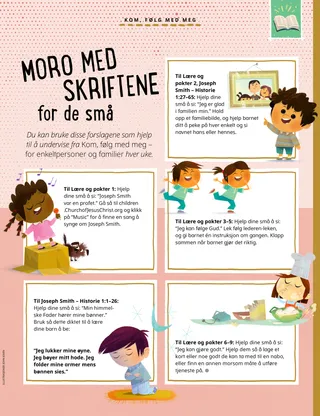 Januar 2021 Kjære venner Primærs generalpresidentskapDu kan hjelpe slik Jesus gjorde! Møt Stella fra Ghana Jesus la merke til andre På eventyr i Ghana med Margo og Paolo Lucy Stevenson EwellJaechans første dag Moro med Skriftene Jessica SebastianBare én taxi Kort om Kirkens historie Reise til tempelet Annelise GardinerEn bønn om brød President Ballard besøker Canada Finn den! Jane McBrideSavnet etter bestemor og bestefar Russell M. NelsonJeg er glad i dere Hør ham Blaine GarnerMy Shepherd Vis og fortell Matt og Mandy For eldre barn Sydney SquiresGéoffroy Koussemou Mattea W.Vårt mål for Mormons bok Mål og oppvekst Carolina MarínFestproblemet Lær å tegne! For våre små venner Familiens historiestund Joseph Smith og gullplatene Gullplatene skulle hentes Nita Smart FacerOliver den tapre Jordan Monson WrightJeg snakker med min himmelske Fader Moro med Skriftene for de små Kjære foreldre