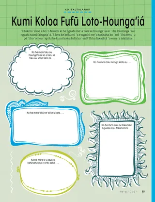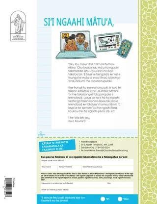 Māʻasi 2021 Si‘i Ngaahi Kaungāmeʻa Henry B. EyringKuó Ne Toe Tuʻu! Amber HealeyKo e Teuteu ki he Toetuʻú Taimi Fiefia ʻi he Folofolá Richard M. RomneyKo Ha Piano maʻa Palōfitá Kuo Toetuʻu ʻa Sīsū Koeʻuhí ko Sīsū Fe‘iloaki mo Vikatōlia mei he Ngaahi Fonua Fakatahataha ‘o ʻAlepeá Naʻe Fakafiemālieʻi ʻe Sīsū ʻa e Niʻihi Kehé ʻEveʻeva mo Māko mo Paolo ʻi he UAE Sarah ChowTaʻengata ʻŪ Kaati Hisitōlia ʻo e Siasí Kumi Ia! David DicksonKo e ʻEveʻeva Pē ‘i Tuʻá Nofo Malu ʻi he Mītiá ʻAʻahi ʻa ʻEletā ʻUkitofa ki Siamane Hoko ʻo ʻIloʻi ʻa e Tokāteline mo e Ngaahi Fuakavá Fakahā pea Tala David P. HomerFalala ki he Palōfitá Meti mo Menitī Ma‘á e Fānau Lalahi Angé Lucy Stevenson EwellʻOkositō Limi Scarlett H.Loto-to‘a ʻi he Kuaeá Kumi Koloa Fufū Loto-Houngaʻiá Sydney SquiresKo e Kaungāmeʻa Fetohiʻaki (Pen Pal) Lelei Tahá Fanga Manu ʻi he Hisitōlia ʻo e Siasí Maʻá e Ngaahi Kaumeʻa Īkí Ko e Toetu‘u ʻa Lainií Ko Hono Toe Fokotu‘u ʻa e Siasi ‘o Sīsū Kalaisí Peesi Valivalí Lori Fuller SosaNgāue Fakataha Meaghan JamesKo Hoku Le‘ó Taimi Fiefia ʻi he Folofolá maʻá e Fānau Īkí Siʻi Ngaahi Mātuʻa