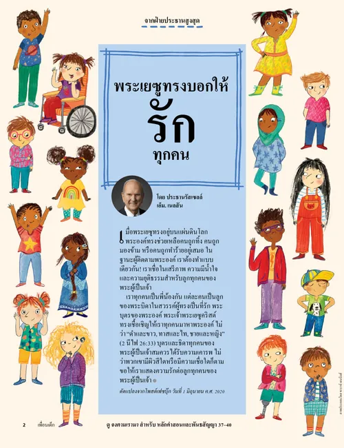 เราทุกคนเป็นพี่น้องกัน แต่ละคนเป็นลูกของพระบิดาในสวรรค์ผู้ทรงเป็นที่รัก พระบุตรของพระองค์ พระเจ้าพระเยซูคริสต์ ทรงเชื้อเชิญให้เราทุกคนมาหาพระองค์ ไม่ว่า “ดำและขาว, ทาสและไท, ชายและหญิง” (2 นีไฟ 26:33) บุตรและธิดาทุกคนของพระผู้เป็นเจ้าสมควรได้รับความเคารพ ไม่ว่าพวกเขามีผิวสีใดหรือมีความเชื่อใดก็ตาม ขอให้เราแสดงความรักต่อลูกทุกคนของพระผู้เป็นเจ้า
