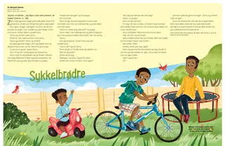 Zamu satte fra seg sykkelen og tok Zinathi i hånden. Han hjalp lillebroren å klatre opp på trampolinen. Så klatret han opp og satte seg ved siden av pappa.
