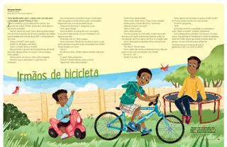 Zamu desceu do trampolim e ajudou Zinathi a subir no triciclo. Depois montou em sua bicicleta.