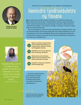 Notsoahina avy tamin’ny “Nitsangana i Kristy; hamindra tendrombohitra ny finoana Azy,” Liahona, Mey 2021.