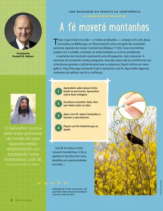 Tudo o que é bom na vida — e todas as bênçãos — começa com a fé. Jesus prometeu na Bíblia que, se “[tivermos] fé como um grão de mostarda”, seremos capazes de mover montanhas (Mateus 17:20). Suas montanhas podem ser a solidão, a dúvida, as enfermidades ou outros problemas.