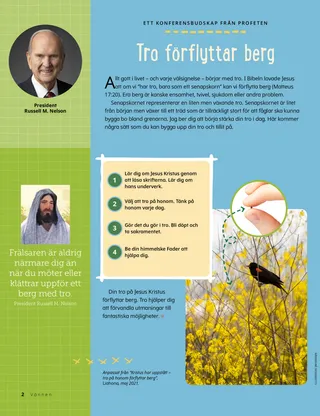 Allt gott i livet – och varje välsignelse – börjar med tro. I Bibeln lovade Jesus att om vi ”har tro, bara som ett senapskorn” kan vi förflytta berg (Matteus 17:20). Era berg är kanske ensamhet, tvivel, sjukdom eller andra problem.