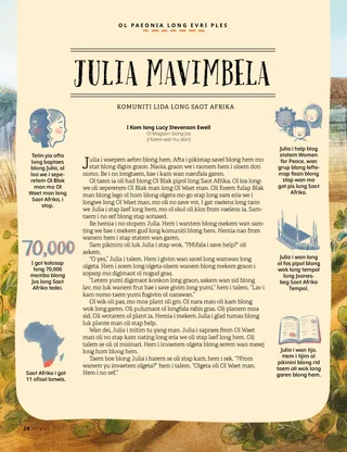 Be Julia i trastem ol misinari ia. “Ol man ia oli defren,” Julia i talem. “Oli stap prij abaot pis.”