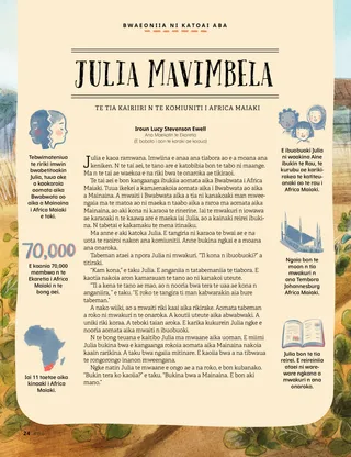 Julia e kaotia nakoia ataei n te taromauri bwa a na kanga n ibuobuoki n ana onaroka. “Ti riai ni maraurau inanora, n aron te tano aei,” e taku. “Ti riai ni karaoa te tabo ibukin te euangkerio inanora. Ti riai ni karekea te tabo ibukin te tangira.”