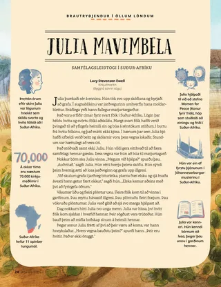 Það voru erfiðir tímar fyrir svart fólk í Suður-Afríku. Lögin þar héldu hvítu og svörtu fólki aðskildu. Margt svart fólk hafði verið þvingað til að yfirgefa heimili sín og búa á sérstökum stöðum, í burtu frá hvíta fólkinu, og það mátti ekki kjósa. Í bænum þar sem Julia bjó hafði ofbeldi verið beitt og skólarnir voru þess vegna lokaðir. Stundum var hættulegt að vera úti.