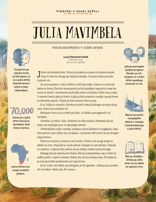 Julia je pomagala vpeljati program Ženske za mir, skupino, ki v Južni Afriki spodbuja enotnost in mir.