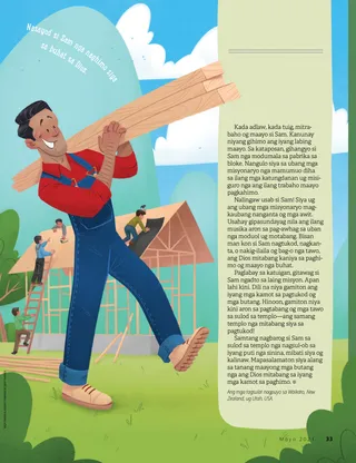 Mainampingong gipunit ni Sam ang iyang martilyo. Gikinahanglan niyang mas maningkamot kay sa ubang mga trabahante, apan wala siya manumbaling. Gusto lang niyang motabang. Nasayod siya nga naghimo siya sa buhat sa Dios. Ug kon naghimo siya sa buhat sa Dios, ang Dios motabang gayod kaniya!