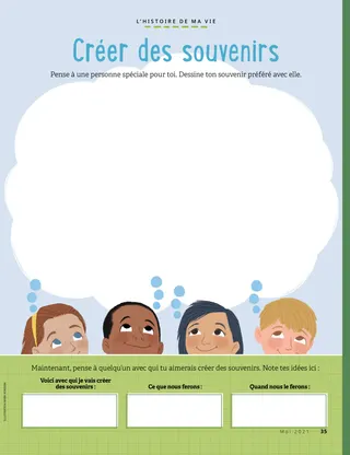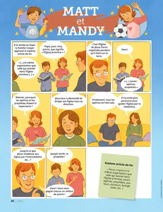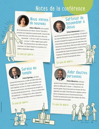 Mai 2021 Chers amis Russell M. NelsonLa foi déplacera des montagnesLis un message de conférence spécial que Russell M. Nelson, le président de l’Église a donné au sujet de la foi. Nouvelles de la conférenceDécouvre des nouvelles importantes de la conférence générale ! Notes de la conférenceLis quelques histoires de la conférence générale et écris ce que tu as appris. Leçon de choses sur la conférenceEnsemble de citations et de productions d’arts plastiques d’enfants du monde entier, sur le thème de la conférence générale ! Amber HealeyBloquée dehors ! Moment amusant avec les Écritures Maryssa DennisLes frères en deux-roues Frère Cook visite les Philippines Seigneur, merci pour le prophète Fais la connaissance de Sophie en Norvège Jésus a aidé à créer la terre Aventures en Norvège avec Margo et Paolo Richard M. RomneyFootball et jour du sabbat Cartes de l’histoire de l’Église Trouve-les ! Des mots d’encouragement Haley YanceyUne statue de Jésus Boston B.Le déménagement de notre famille Quels sont tes dons ? Matt et Mandy Pour les enfants plus âgés Lucy Stevenson Ewell et Nancy HarwardSam Beazley Alice A.Mon premier jeûne Créer des souvenirs Charlotte LarcabalLa famille de Charlotte Dessine Joseph Smith Pour les tout-petits Le nouvel ami de Taara Les saints bâtissent une nouvelle ville Je peux faire des choses difficiles Jane McBrideUne couronne d’anniversaire Christine GrahamMoment pour être respectueux Moment amusant avec les Écritures pour les tout-petits Chers Parents