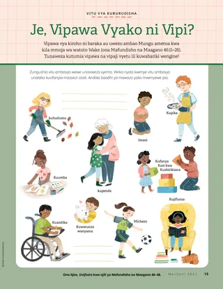Mei/Juni 2021 Marafiki Wapendwa Russell M. NelsonImani Itahamisha MilimaSoma ujumbe maalum wa mkutano kuhusu imani kutoka kwa Rais Russell M. Nelson. Amber HealeyKufungiwa Nje! Linda DaviesKutana na Shiloh kutoka Ufilipino Yesu Aliwajumuisha Wengine Matukio Yasiyo ya Kawaida huko Ufilipino na Margo na Paolo Haley YanceySanamu ya Yesu Kitafute! Tunakushukuru, Ewe Mungu, kwa Ajili ya Nabii Raihau T.Nilipiga Wimbo wa Kanisa Je, Vipawa Vyako ni Vipi? Mambo ya Kukumbuka Onyesha na Elezea Richard M. RomneySoka na Sabato Mzee Cook Anazuru Ufilipino Mchore Joseph Smith Lucy Stevenson EwellJulia Mavimbela Watakatifu Wanajenga Makazi Mapya Mimi Naweza Kufanya Mambo Magumu Haley YanceyBraden Anaongoza Njia Isabella S.Nitamwona Kaka Yangu Tena Kadi za Historia ya Kanisa Wazazi Wapendwa