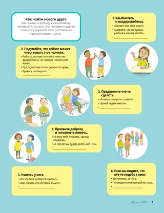 Как проявить доброту к незнакомому человеку? А что если этот человек из другой страны? Придумайте свои собственные идеи для каждого шага.