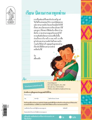 มิถุนายน 2021 เพื่อนที่รักหน้านี้ประกอบด้วยจดหมายจากเจ้าหน้าที่และผลงานจากเด็กๆ ที่อธิบายว่าพวกเขาอ่าน เพื่อนเด็ก อย่างไร ดัลลิน เอช. โอ๊คส์มีเมตตาประธานโอ๊คส์เล่าเรื่องราวเกี่ยวกับเด็กชายลี้ภัยคนหนึ่งที่ถูกแกล้งเพราะแตกต่าง ท่านสนับสนุนให้เด็กๆ เป็นคนใจดี ดัดแปลงจากคำปราศรัยการประชุมใหญ่สามัญ เฮลีย์ ยันซีย์น้ำชาหรือน้ำมะม่วง?ชุงตัดสินใจดื่มน้ำผลไม้เพราะน้ำชาขัดกับพระคำแห่งปัญญา จิโร เพื่อนของเขา ช่วยให้เขายืนหยัดด้วยตนเองทั้งที่ค่อนข้างลำบาก แม้จิโรจะไม่ใช่สมาชิกศาสนจักรก็ตาม สนุกกับช่วงเวลาพระคัมภีร์บทเรียนการสังสรรค์ในครอบครัวจากการมอบหมายให้อ่าน จงตามเรามา ในแต่ละสัปดาห์ สำหรับ หลักคำสอนและพันธสัญญา 60–75 เกลนด้า เมนเดซ เด โลเปซการสวดอ้อนวอนเพื่อคุณพ่อวันหนึ่งพ่อของแดนนารู้สึกไม่ดี เธอจึงตัดสินใจสวดอ้อนวอนให้เขาและเขียนจดหมายฉบับพิเศษเพื่อบอกว่าเขามีความหมายต่อเธอมากเพียงใด เอ็ลเดอร์คริสทอฟเฟอร์สันเยือนเวียดนามเรียนรู้เกี่ยวกับการไปเยือนเวียดนามของเอ็ลเดอร์ดี. ทอดด์ คริสทอฟเฟอร์สัน จับคู่พระวิหารลากเส้นเพื่อจับคู่พระวิหารกับตำแหน่งที่ตั้ง พบกับคาลส์จากเปอร์โตริโกคาลส์ชอบช่วยเหลือผู้คน เขาช่วยเหลือผู้คนหลังจากแผ่นดินไหวที่รุนแรงในเดือนมกราคม ปี 2020 และต่อมาเขารับใช้ชุมชนในปีนั้น เรียนรู้เพิ่มเติมเกี่ยวกับคาลส์ได้จากบทความนี้ พระเยซูทรงรับใช้ผู้อื่นพระเยซูทรงสอนว่าการรับใช้ผู้อื่นเป็นสิ่งสำคัญ หากเราช่วยเหลือผู้อื่น เราจะมีความสุข หน้านี้มีกิจกรรมที่ช่วยให้เด็กๆ วางแผนแนวทางในการรับใช้ผู้อื่นและเรื่องราวเกี่ยวกับการรับใช้ผู้อื่นของเด็กคนหนึ่ง การผจญภัยในเปอร์โตริโกกับมาร์โกและเปาโลมาร์โกและเปาโลเดินทางไปเปอร์โตริโกเพื่อสอนเด็กๆ ให้เข้าใจวัฒนธรรมอื่นๆ พวกเขายังท้าทายให้เด็กๆ รับใช้ชุมชนของตนอีกด้วย ชาร์ลอตต์ ลาร์คาบาลอย่างที่เธอจินตนาการไว้กวิตกากำลังจะรับบัพติศมา! แต่เนื่องจากเกิดการแพร่ระบาดของโควิด-19 จึงมีเพียงไม่กี่คนเท่านั้นที่ได้รับอนุญาตให้มาดูเธอรับบัพติศมา แต่คุณยายช่วยให้เธอรู้สึกดีขึ้น การ์ดประวัติศาสนจักรเรียนรู้เกี่ยวกับ มารี คาร์ดอน ผู้เปลี่ยนใจเลื่อมใสชาวอิตาลีที่มีศรัทธาอันแรงกล้า และ แอนธอน ลันด์ ผู้เปลี่ยนใจเลื่อมใสชาวเดนมาร์กที่เติบโตขึ้นมาเป็นประธานคณะเผยแผ่และอัครสาวก หาให้เจอ!ค้นหาสิ่งของต่างๆ ที่ซ่อนอยู่ในรูปภาพ ลอรี ฟูลเลอร์ โซซาพยายามด้วยกันแจ็คกำลังมีปัญหา แม่ของเขาตะโกนใส่เขา และเขาก็ตะโกนตอบ 