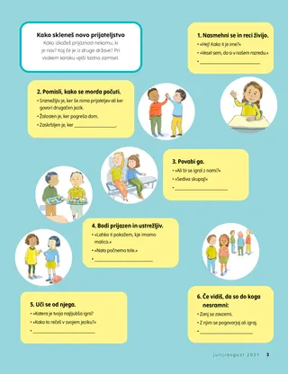 Kako izkažeš prijaznost nekomu, ki je nov? Kaj če je iz druge države? Pri vsakem koraku vpiši lastno zamisel.