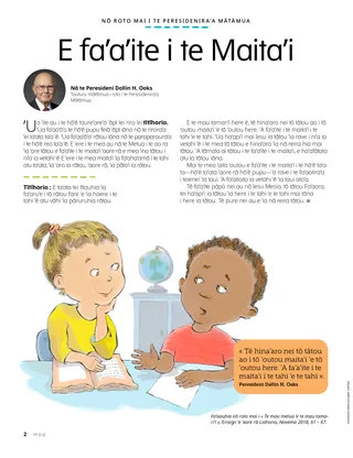 Fa’aauhia nō roto mai i « Te mau metua ’e te mau tamari’i », Ensign ’e ’aore rā Liahona, Novema 2018, 61 – 67.