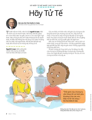 Các em thiếu nhi thân mến, thế giới của chúng ta cần lòng tốt và tình yêu thương của các em. Hãy tử tế với nhau. Chúa Giê Su dạy chúng ta hãy đối xử với người khác như cách chúng ta muốn được đối xử. Khi cố gắng hết sức để tử tế, chúng ta đến gần với Ngài hơn.