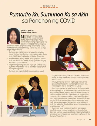 Noong quarantine para sa COVID-19, nag-aral ako sa bahay namin kasama si Papa. Ginawa namin ang mga regular na gawain ko sa paaralan, pero pinag-aralan din namin ang manwal ng Pumarito Ka, Sumunod Ka sa Akin para sa Primary. Narito ang ilan sa mga bagay na ginawa ko: