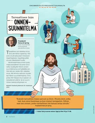 Henkimaailmassa ennen syntymääsi taivaallinen Isä antoi sinun valita, hyväksytkö Hänen onnensuunnitelmansa vai hylkäätkö sen. Hän teki sen, koska Hän rakastaa sinua. Me teimme valinnan noudattaa Hänen suunnitelmaansa. Onni, jonka Hän haluaa sinun saavan, on iankaikkinen elämä. Se on suurin Hänen kaikista lahjoistaan.