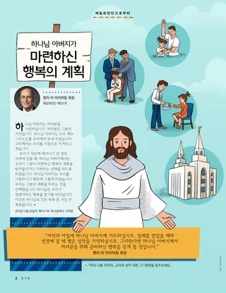 우리가 세상에 태어나기 전 영의 세계에 있을 때, 하나님 아버지께서는 우리가 그분이 마련하신 행복의 계획을 받아들이거나 거부하는 선택을 하도록 하셨습니다. 하나님 아버지는 우리를 사랑하시기 때문에 그렇게 하셨습니다. 우리는 그분의 계획을 따르는 것을 선택했습니다. 하나님은 우리가 영생이라는 행복을 얻기를 바라십니다. 이것은 하나님의 모든 축복 중 가장 큰 축복입니다.
