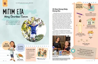 Mama blong Eta i gat wan stoa blong bekem ol swit kaekae, long aelan blong olgeta. Eta mo bigfala sista blong hem, Talai, tufala i laekem blong stap serem ol swit kaekae ia wetem ol tija mo lida blong tufala, mo wetem ol pipol we oli stap gat wan hadtaem. Samtaem oli stap ron long trak wetem mama blong olgeta mo givim ol kuki mo ol nara swit kaekae long ol pipol we oli luk long rod. I mekem ol pipol oli hapi tumas, mo i mekem Eta mo Talai oli stap glad blong serem kaekae. !Oli kasem moa glad blong stap serem ol swit kaekae blong stoa, bitim we bae olgeta nomo i kakae bakegen! Tufala tugeta i stap lan blong bekem samting olsem wan long ol gol blong tufala long program blong Ol Pikinini mo Yut, long yia ia, mekem se, oltaem tufala i gat ol swit kaekae blong serem.
