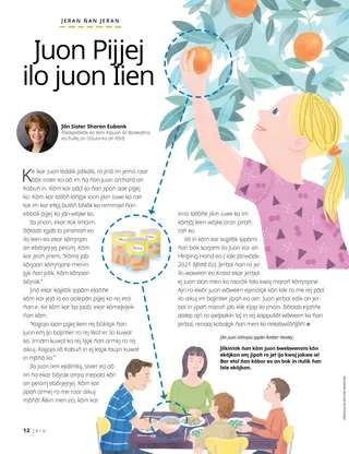 Ke ikar juon leddik jidikdik, ro jinō im jema raar bōk sister eo aō im n̄a n̄an juon orchard an Kabun̄ in. Kōm kar pād ijo n̄an jipan̄ aae pijjej ko. Kōm kar tallōn̄ lōn̄ļo̧k ioon jikin iuwe ko raittok im kar etto̧ļ bulōn̄ bōlōk ko remmijel n̄an ebbōk pijjej ko jān wōjke ko.
