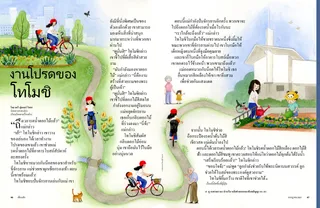 “ดูนั่นสิ!” โทโมชิกล่าว เขาชี้ไปที่ดอกไม้สีสดใสกำลังงอกงามอยู่ริมถนน