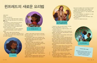 윈프레드는 적어 놓은 요리법을 할머니에게 읽어 드렸어요. “윈프레드의 행복 요리법. 1. 기도한다. 2. 경전을 읽는다. 3. 예수 그리스도를 믿는 신앙을 갖는다. 4. 감사드린다.”