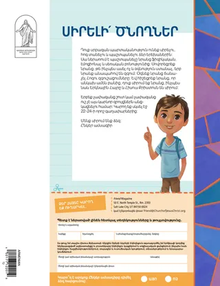 Հուլիս/օգոստոս 2021 թ․ Սիրելի՛ ընկերներԱյս էջը պարունակում է նամակ աշխատակազմի կողմից և երեխաների կողմից ներկայացված գրառումներ, թե ինչպես են նրանք կարդում Ընկերը։ Դալլին Հ. ՕուքսԵղեք բարիՆախագահ Օուքսը պատմում է մի փախստական տղայի մասին, ում ծաղրում են՝ տարբեր լինելու համար։ Հիսուսը խրախուսում է երեխաներին բարի լինել։ Վերցված է գերագույն համաժողովի ելույթից։ Հեյլի ՅանսիԹեյ, թե՞ մանգոյի հյութ։Չանգը որոշում է հյութ ըմպել, քանի որ թեյը դեմ է Իմաստության Խոսքին։ Նրա ընկերը՝ Ջիրոն, օգնում է նրան պաշտպանվել, երբ բարդ իրավիճակ է ստեղծվում, չնայած որ Ջիրոն Եկեղեցու անդամ չէ։ Ծանոթացեք Էտայի հետ Ամերիկյան ՍամոայիցԾանոթացեք մի աղջկա հետ Ամերիկյան Սամոայից, ով օգնում է Հիսուսի նման։ Հիսուսը կիսվում էր ուրիշների հետՀիսուսը հաց և ձուկ կիսեց Իր աշակերտների հետ և ասաց նրանց, որ օգնեն ուրիշներին։ Նպատակ սահմանեք՝ կիսվելու որևէ մեկի հետ։ Արկածներ Ամերիկյան Սամոայում Մարգոյի և Պաոլոյի հետՍովորեք Ամերիկյան Սամոայի մասին և ընդունեք այս ամսվա Օգնող Ձեռքերի մարտահրավերը։ Շառլոտ ԼարկաբալԴիտերի երազանքըԱյս պատմությունը նկարագրում է Երեց Դիտեր Ֆ․ Ուխդորֆի օդաչու դառնալու ուղին, և թե ինչպես երեխաները կարող են դառնալ այն, ինչ ուզում են ։ Շերոն ՅուբենկԱմեն անգամ մեկ դեղձՔույր Շերոն Յուբենկը՝ Սփոփող Միության գերագույն նախագահության առաջին խորհրդականը, կիսվում է Օգնող Ձեռքերի հրավերի վերաբերյալ իր մտքերով և զգացմունքներով։ Նաև կիսվում է մի պատմությամբ, թե ինչ է սովորել, երբ մանկության տարիներին իր ընտանիքի հետ դեղձ է հավաքել։ Զգում եմ սերը ՓրկչիՄանկական երգարանի երգերից մեկի պարզեցված տարբերակը։ Ռիչարդ Մ. ՌոմնիՎինֆրեդի նոր բաղադրատոմսըՎինֆրեդը սովորում է, որ ուրիշներին ծառայելն օգնում է իրեն լինել երջանիկ։ Փրկության ծրագիր սեղանի խաղԽաղը նախատեսված է երեխաներին փրկության ծրագրի մասին ուսուցանելու համար և խրախուսելու նրանց ընտրել ճիշտը՝ սելեստիալ արքայություն հասնելու համար։ Ցույց տուր և պատմիրԱշխարհի բոլոր ծայրերից երեխաների կողմից ստացված նյութեր, որոնք պատմում են անձնական փորձառությունների մասին՝ սկսած մկրտությունից մինչև ծառայություն և ընտանիք։ Նենսի Հարվարդ, Լյուսի Սթիվենսոն ԷվելՎահաի ՏոնգաՎահաին այնպիսի օրինակ էր գիշերօթիկ դպրոցի իր ընկերների համար, որ նրանք դադարեցին ծաղրել նրան աղոթելու համար։ Նրանք նույնիսկ սկսեցին աղոթել և եկեղեցի գնալ նրա հետ, և ոմանք մկրտվեցին։ Շեյլա ՔինդրիդԳաղտնիքներ և անակնկալներՄի աղջիկ խանութից «փրկում» է թղթե տիկնիկը և հասկանում է, որ գողացել է այն։ Նա որոշում է պատմել մայրիկին, այլ ոչ թե գաղտնի պահել այն։ Նա նաև սովորում է, թե որն է տարբերությունը գաղտնիքի և անակնկալի միջև։ Պաշտպանեք ինքներդ ձեզԻնչ կարող են անել և ասել երեխաները, որպեսզի պաշտպանվեն մարդկանցից և բաներից, որոնք անհարմար իրավիճակ են ստեղծում իրենց համար։ Նաև խրախուսեք երեխաներին մտածել, թե իրենք ում հետ կարող են խոսել, եթե ինչ-որ բան սխալ է։ Գտի՛ր այն:Նկարում գտիր թաքնված առարկան։ Աստծո ծրագրի տեսիլքըՋոզեֆ Սմիթի և Սիդնի Ռիգդոնի՝ փրկության ծրագրի վերաբերյալ տեսիլք ստանալու պատկերազարդ տարբերակը, և թե ինչ նշանակություն ունի այն այս աշխարհում յուրաքանչյուրի համար։ Երկնային Հայրը ծրագիր ունի ինձ համարՆերկելու համար էջը հատկապես նախատեսված է փոքր երեխաների համար՝ կենտրոնացված Երկնային Հոր երջանկության ծրագրի վրա։ Իմաստության ԽոսքըՍովորեք այն մասին, թե ինչպես Ջոզեֆ Սմիթը ստացավ Իմաստության Խոսքը։ Եկեղեցու պատմության քարտեր Սիրելի ծնողներՆամակ ծնողներին՝ խրախուսելու նրանց պաշտպանել իրենց երեխաներին բռնությունից։
