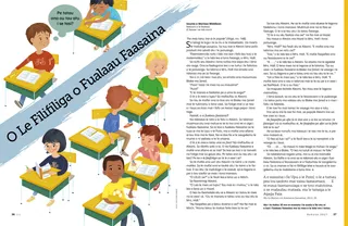 O le a le mea e tatau ona ou faia? Na mafaufau ai Alevini. Sa tilotilo solo o ia. O na fualaau faasaina e mafai ona afaina ai se tasi! Sa leai se tasi o isi tamaiti na foliga mai sa gauai atu. Pe tatau ona ou tau atu i se tasi? Pe na o le faafoliga ou te le o vaai i ai?