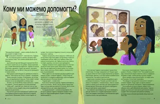 “Кому ще?”—запитав тато. Вони всі сіли на траву. І склали список людей, кому може знадобитися невеличка допомога.