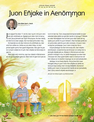 Juon jippon̄ ke ekar 11 aō iiō, ikar ruj im ron̄ juon ainikien jān ettōn̄aak eo. Ejjeļo̧k juon ekar itok im karuj n̄a n̄an jikuuļ āinwōt aer kijon̄ kōm̧m̧ane. Ke ikar diwōj im lale ta eo eaar waļo̧k, ikar loe bwe jema ekar mej.