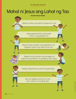 Ang pagmamahal sa iba tulad ni Jesus ang gagawin ko.