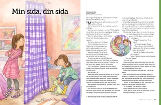 Nästa dag hittade Mia en liten låda. Hon satte den mellan deras båda sidor av rummet. Sedan skrev hon ett meddelande och lade det i lådan: Megan, ska vi leka med mina mjukisdjur? Kram, Mia.